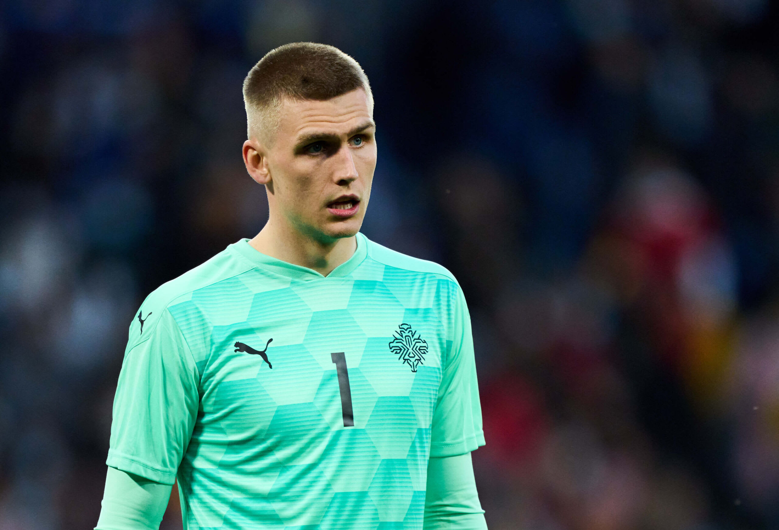 LA CORUNA, SPAIN – MARCH 29: Runar Alex Runarsson of Iceland reacts during the international friendly match between Spain and Iceland at Riazor Stadium on March 29, 2022, in La Coruna, Spain. (Photo by Juan Manuel Serrano Arce/Getty Images)